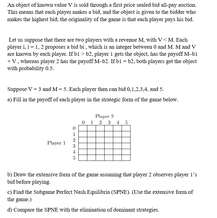 Solved An Object Of Known Value V Is Sold Through A First Chegg Com